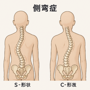 背骨が横にカーブし、見た目が「S字」や「C字」になることもあります。